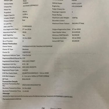 Road Tax 30/01/2026 - $893